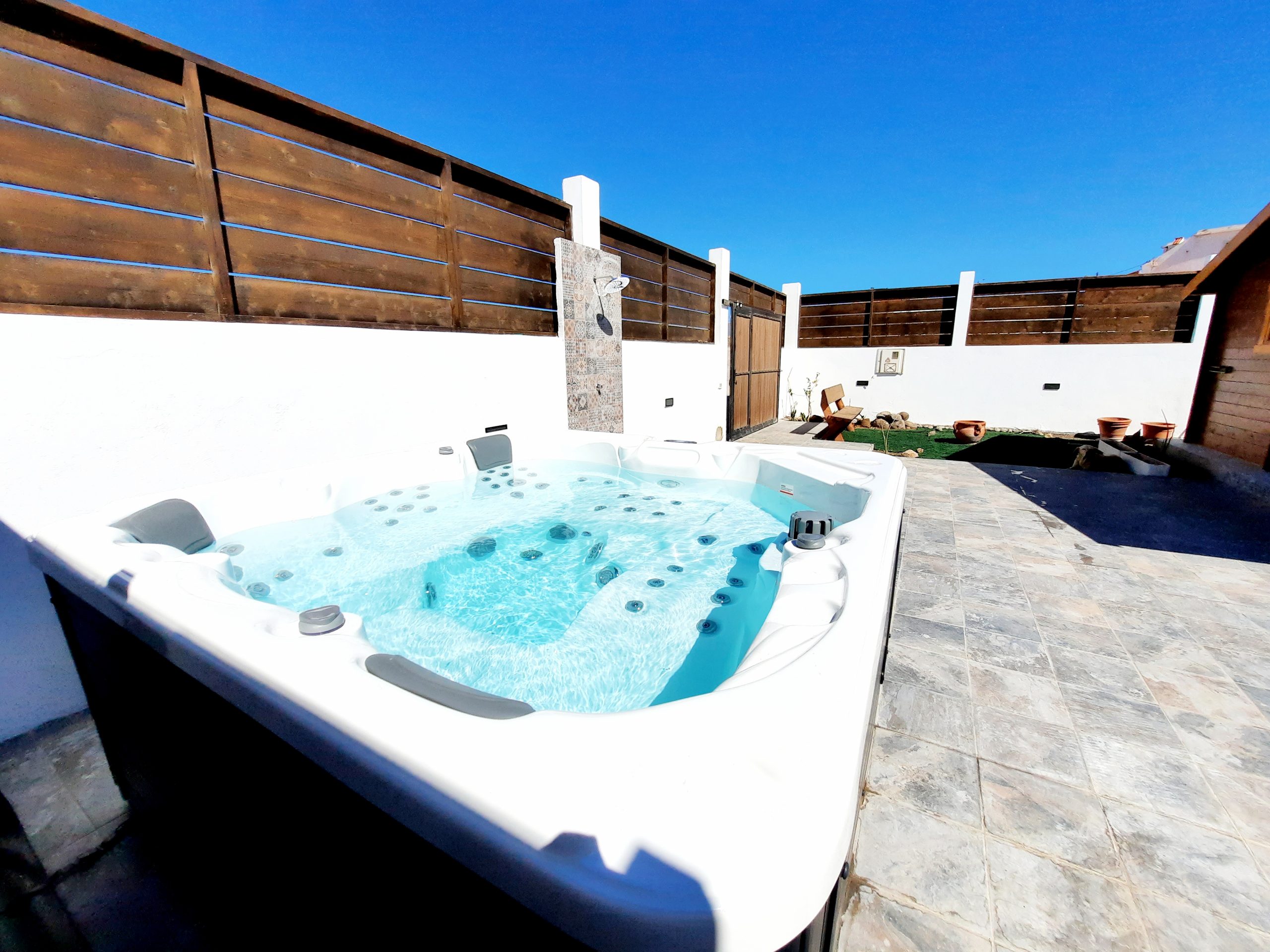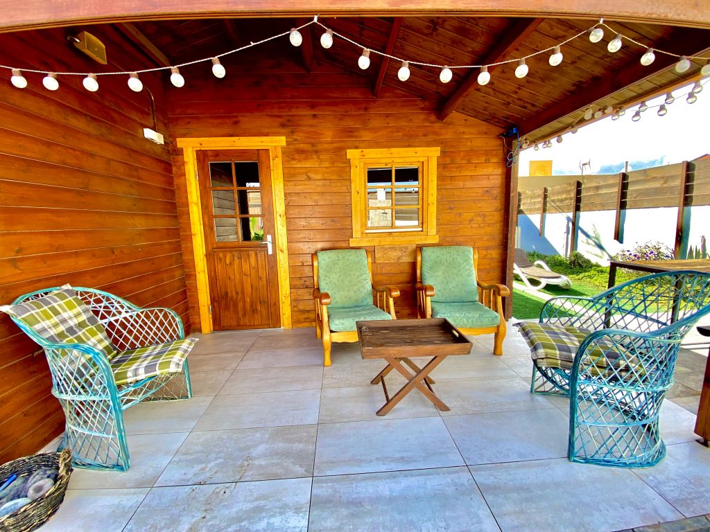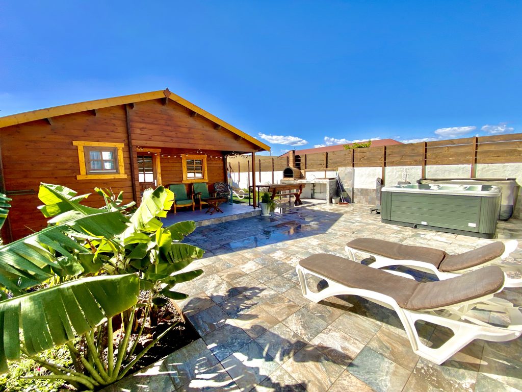 Cada casa tiene todo lo necesario par disfrutar de una vacaciones en total paz, relax y tranquilidad, contamos con un gran jardín al rededor de cada casa, además de hamacas, barbacoas, muchos arboles frutales y flores para ofrecer un ambiente natural y bonito, además de nuestro punto fuerte, un gran Jacuzzi full opcional y de los mejores del mercado que esta instalado en cada casa, y que nuestros huéspedes pueden utilizar de forma gratuita y en total privacidad e intimidad.